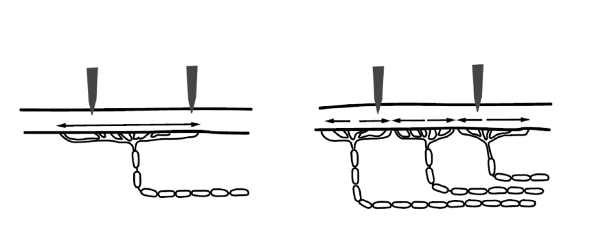 Manche Körperstellen, wie die Fingerspitzen, haben besonders viele Rezeptoren. Deshalb kannst du mit deinen Händen zwei Berührungen sehr gut unterscheiden. Andere Körperstellen haben weniger Rezeptoren – hier kannst du zwei Berührungen, die nah beisammen sind, nicht so gut unterscheiden.