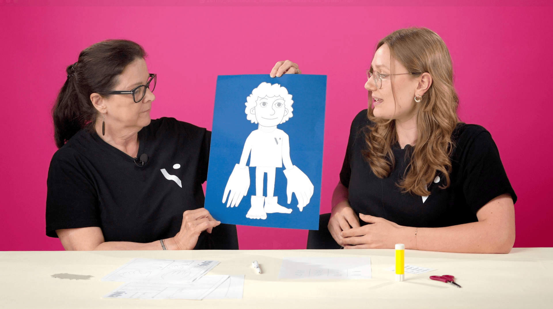 Klebe die ausgeschnittenen Teile auf einem großen Papier zusammen. Fertig ist dein Homunkulus!