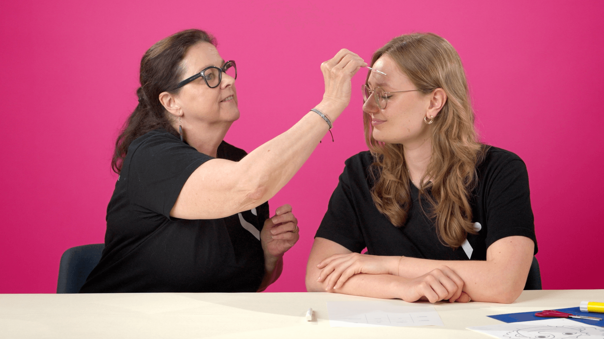 Wenn zwei Berührungen gespürt werden, probiere den nächst kleineren Abstand aus. Das machst du so lange, bis deine Testperson nur eine Berührung spürt. Dann notierst du diesen Abstand in deiner Tabelle mit deinem Stift. Wiederhole den Test an folgenden Stellen: Arm, Stirn, Fuß, Rücken und Oberschenkel. Schreibe immer den Abstand auf, an dem deine Testperson nur mehr eine Berührung spürt.