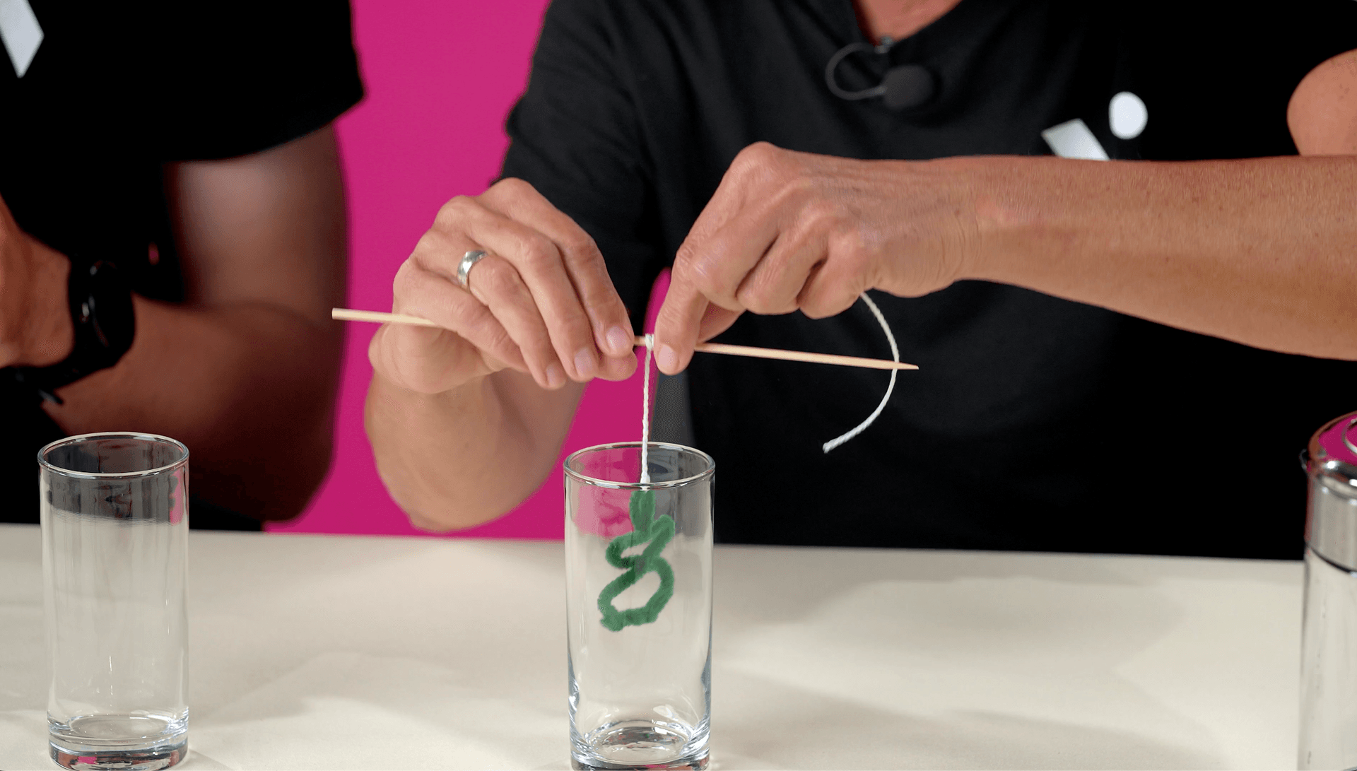 Hang the pipe cleaner in the glass so that it hangs freely in the solution.